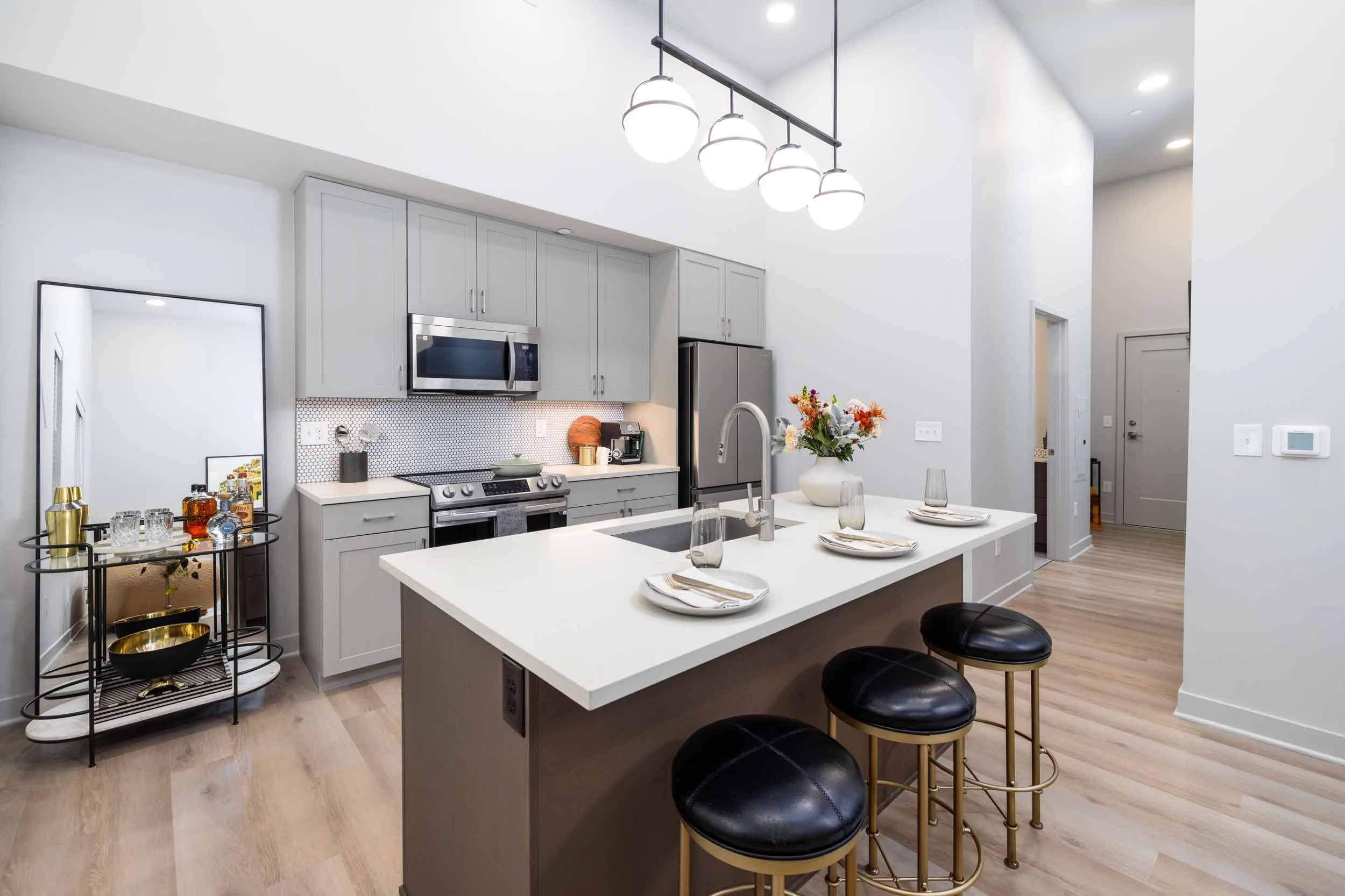 Welcome to Jaeger Square, a collection of luxury apartment homes in Columbus, Ohio’s German Village neighborhood. Our brand-new residences offer a variety of dynamic studios, spacious one- and two-bedroom apartments, and private walk-up townhomes, each meticulously designed for utmost comfort and style. Inside our homes, you'll find carefully curated in-home amenities that exude sophistication. No detail has been overlooked, from the gleaming stainless-steel appliances that grace our gourmet kitchens to the expertly crafted floor plans that fit your storage and lifestyle needs.
